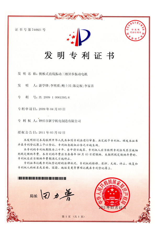 鐘祥新宇機電制造股份有限公司——中國大型振動電機生產(chǎn)基地!聯(lián)系人:宋文耀(經(jīng)理)電話:0724-4231097 13607265083